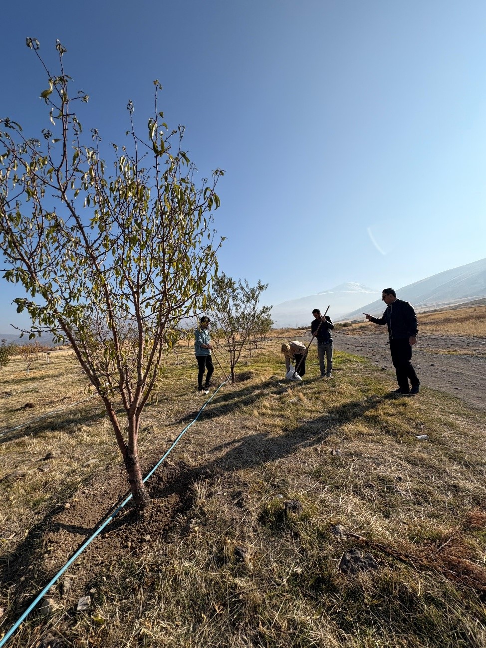 Iğdır Üniversitesi Suveren Kampüsünde 2019 yılında kurulan ve Nonpareil, Karmel, Ferragnes, Ferraduel, Bertina, Lauranne ve Marta çeşitlerinden oluşan Badem Deneme Bahçesinde sonbahar gübreleme uygulaması gerçekleştirildi. Eğitim–öğretim faaliyetleri kapsamında yürütülen çalışmada öğrenciler, Doç.Dr. Ersin GÜLSOY eşliğinde TSP (Triple Süper Fosfat) gübresini ağaçlara uygulayarak önemli bir yetiştiricilik deneyimi kazandı.